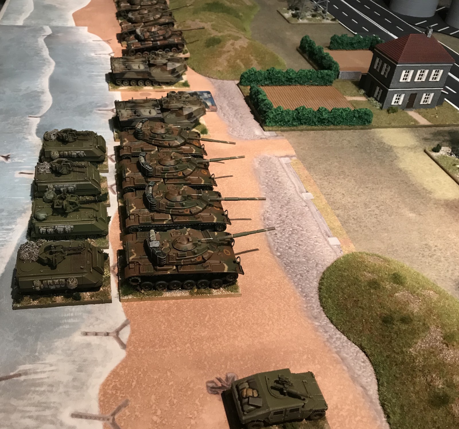 Another great game of Team Yankee in 20mm tonight with Mark Piper. US Marines come ashore in Denmark 1985 to counter a Soviet offensive but are pushed back by a lucky commander (me) who managed to break the force morale in the last turn of the game. Soviets had 76 pts versus a Marine force that was 77 pts, fun game and we got it finished in a couple of hours.